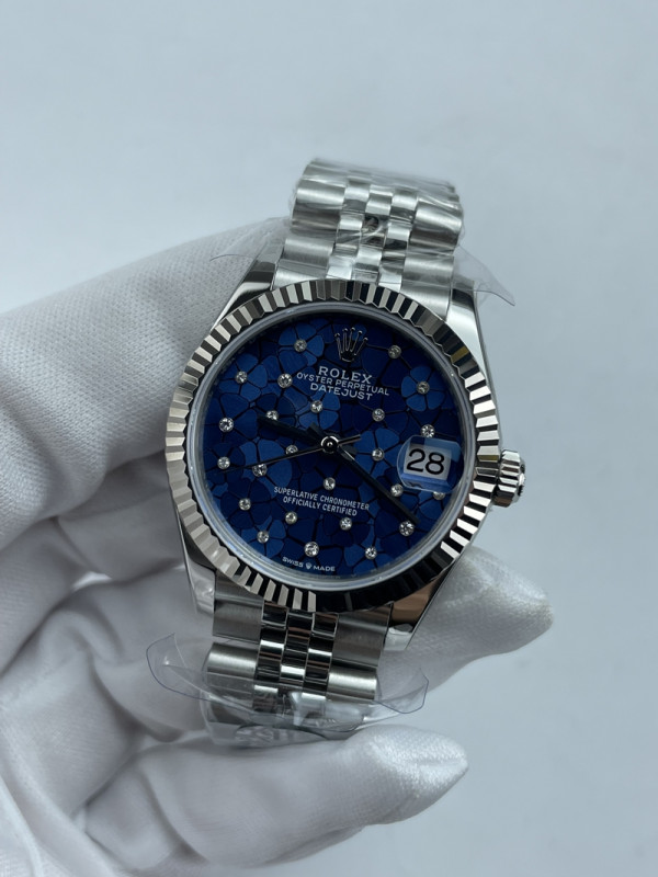 (준비완료/특급배송)NO.3603/롤렉스 데이저스트 31mm 여성용 시계 플로럴 모티프 아주로 블루 다이얼 플루티드 베젤 쥬빌레 밴드 (QP공장)